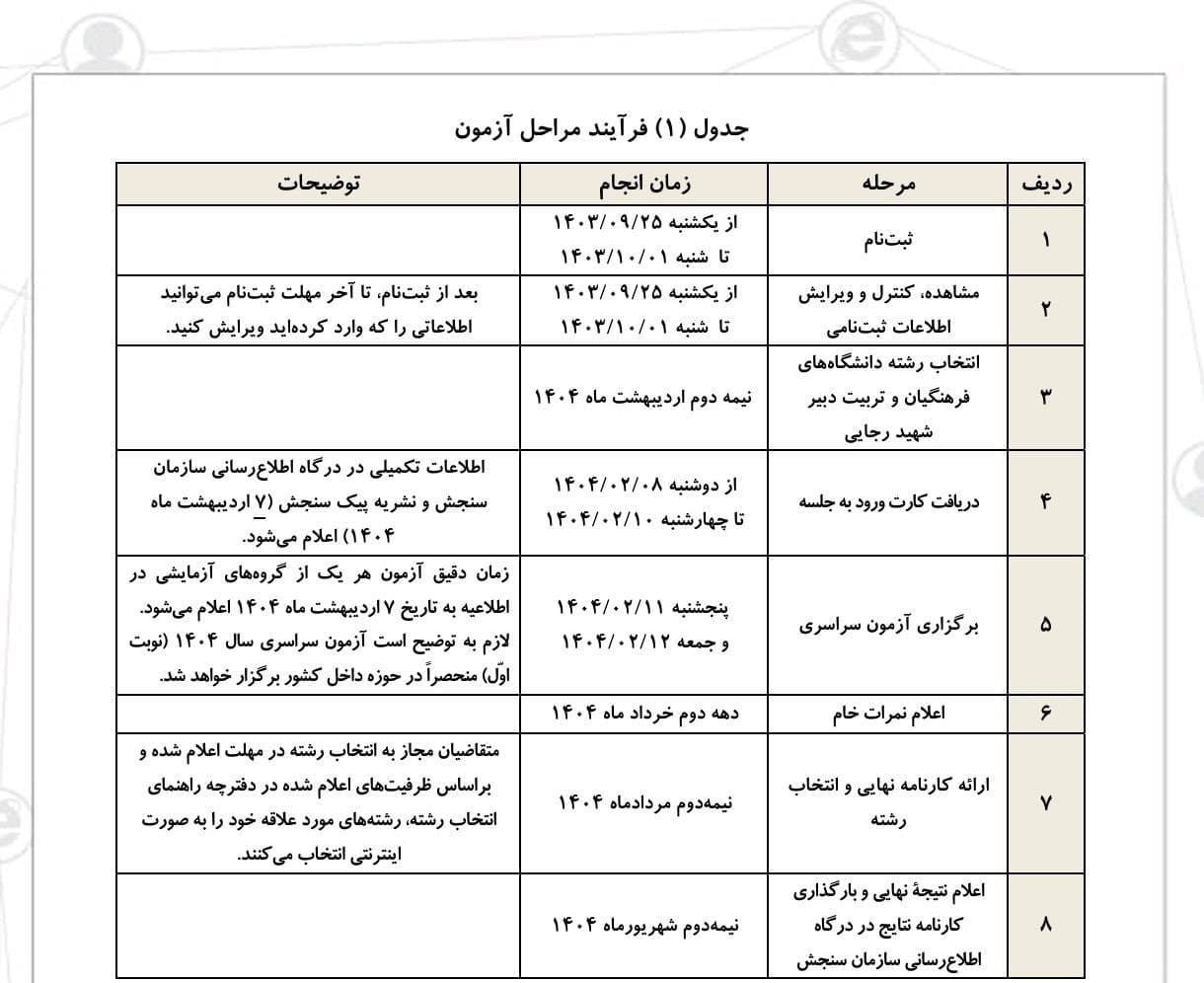 تاریخ ثبت نام کنکور فرهنگیان و سراسری ۱۴۰۴